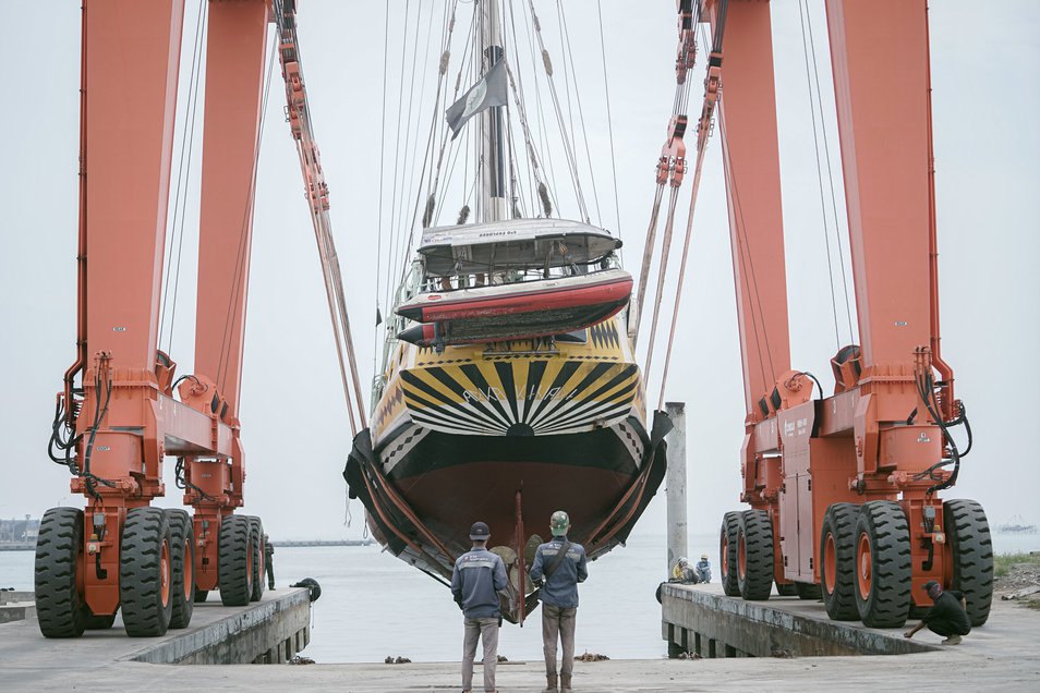 Arka Kinari is a floating cultural platform launched by the artists Filastine & Nova, a seventy-ton sailing ship on a voyage to promote resilience to climate change and re-engagement with the sea. Arka Kinari has sailed thirty thousand nautical miles, stopped in twenty-three nations, and can currently be found touring the spice routes of the Indonesian archipelago.
